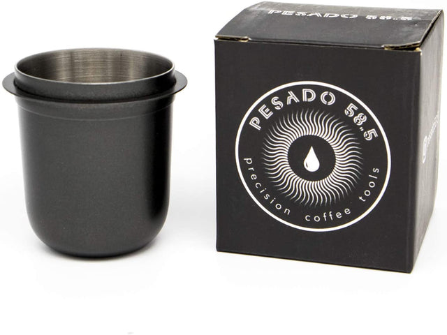 Perfekt für professionelle und schnelle Arbeitsabläufe. Schwarze Ausführung. Passend für 58-mm-Siebfilter. Hergestellt aus Edelstahl mit einer Höhe von 7 cm und einem Durchmesser von 5,7 cm.